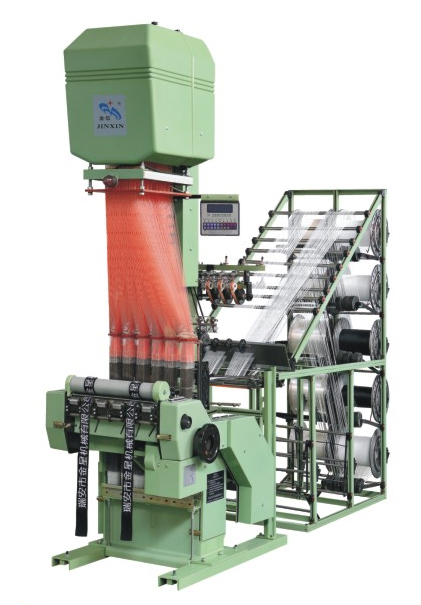 O tear de tecido estreito é adequado para tecidos elásticos leves a médios e não elásticos estreitos. O tear é projetado com 53cm de largura e pode tecer 4 fitas de uma só vez, cada uma com largura máxima de 66mm e ganchos de 384.