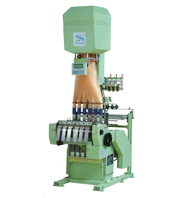 O tear de tecido estreito é adequado para tecidos elásticos leves a médios e não elásticos estreitos. O tear é projetado com 53cm de largura e pode tecer 4 fitas de uma só vez, cada uma com largura máxima de 66mm e ganchos de 384.